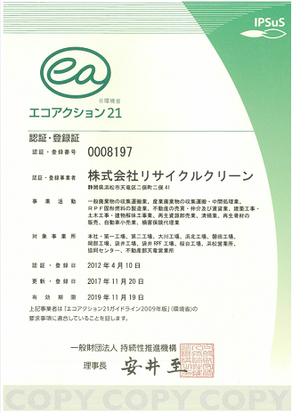 (株)リサイクルクリーンでは「地球環境の保全」が人類共通の課題であることを認識し、企業活動のあらゆる面で「地球環境保護」に配慮した事業活動を展開しております。