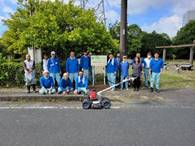 続いては磐田工場近隣清掃活動で公園の広い平たい場所、よーいドンで手持ち草刈り機5台との勝負。圧勝でした。刈った草も均一の長さで刈れるため見た目にもとてもきれいに仕上がりました。
