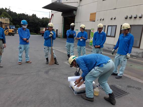 今回は油の漏洩が起きた際の初期対応に関し訓練を実施しました。